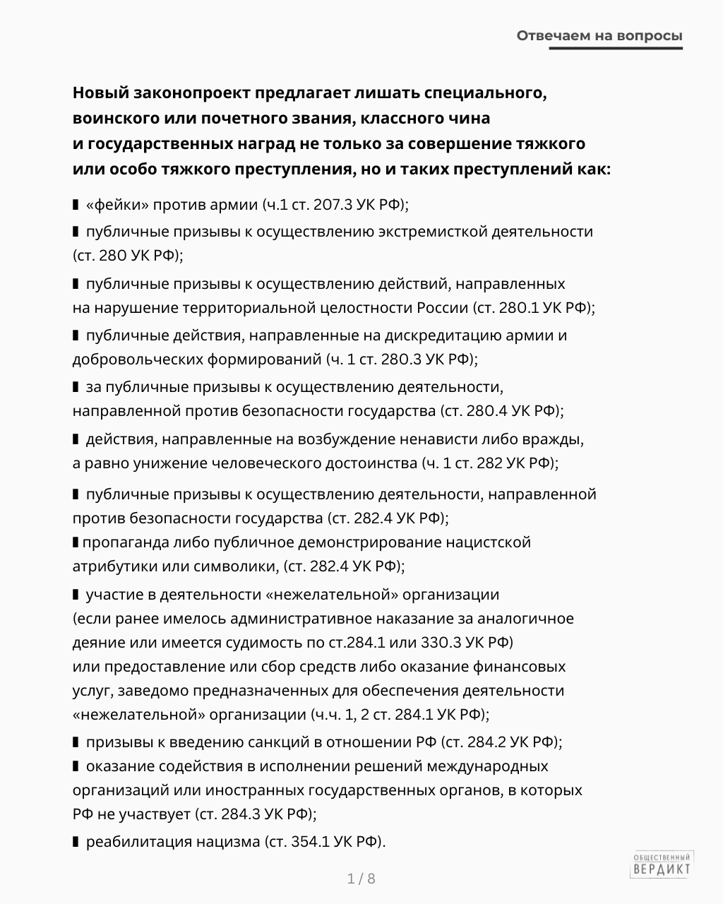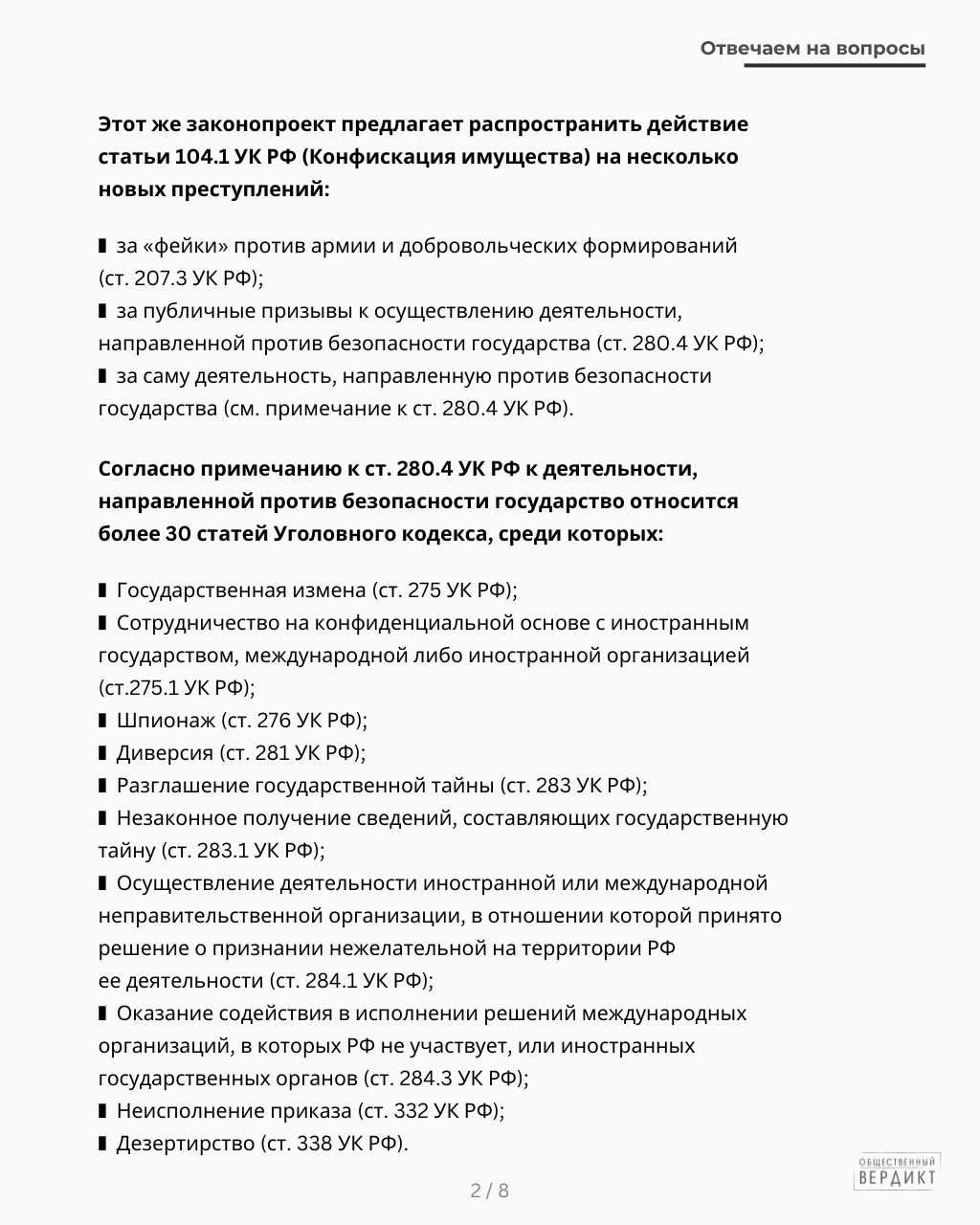 Госдума приняла в первом чтении законопроект о конфискации имущества осужденных по статье «о фейках» и не только. Адвокат Ирина Бирюкова изучила текст нового законопроекта. Ее разъяснения смотрите в наших карточках: