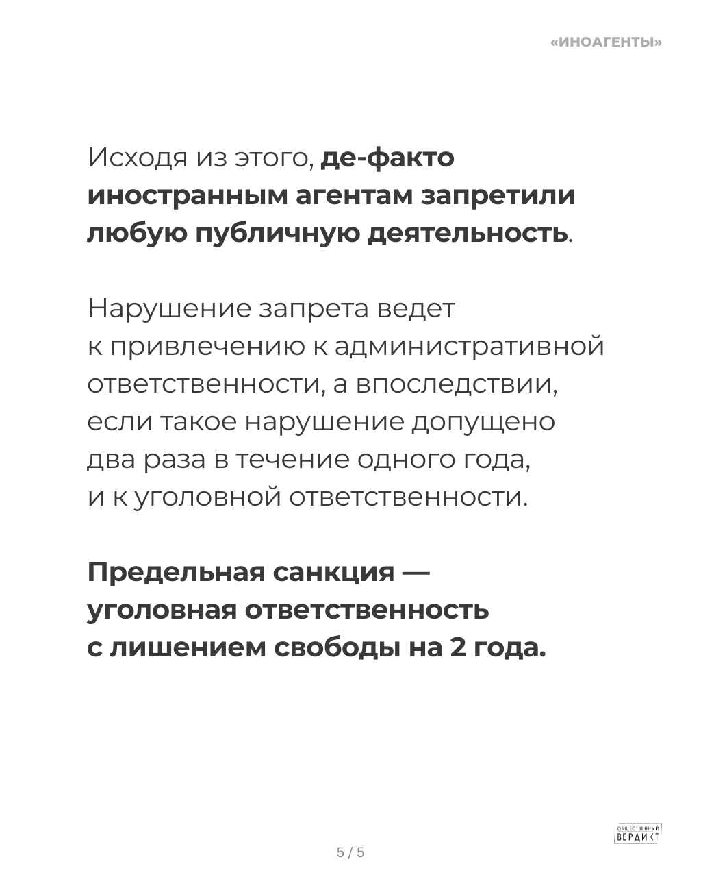 «Иноагентам» де-факто запретили любую публичную деятельность