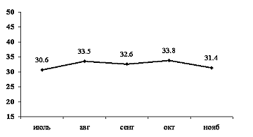 | Индекс ГРАЖДАНСКОЙ ОБЕСПОКОЕННОСТИ | 33,4 | 36,2 | 31,1 | 28,8 | 36,4 | 35,0 | 31,1 | 38,2 | 33,8 | 33,6 | 30,2 |
