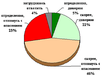 | 3. скорее, отношусь с опасением | 45,9 | 44,8 | 46,8 | 44,1 | 48,9 | 49,8 | 39,9 | 52,2 | 46,4 | 46,2 | 41,5 |