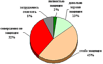 | 2. довольно хорошо защищен | 12,7 | 12,2 | 13,2 | 16,3 | 12 | 8,9 | 15,6 | 14,2 | 10 | 11,6 | 16 | 12,4 | 16,8 | 10,5 | 13,1 |