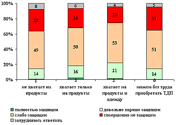 Распределение ответов на вопрос: “НАСКОЛЬКО ВЫ ЛИЧНО ЧУВСТВУЕТЕ СЕБЯ ЗАЩИЩЕННЫМ(-ОЙ) ОТ ПРОИЗВОЛА ПРАВООХРАНИТЕЛЬНЫХ ОРГАНОВ?” по потребительским группам. % от числа ответивших