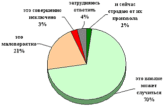Распределение ответов на вопрос: “МОЖЕТЕ ЛИ ВЫ ИЛИ ВАШИ БЛИЗКИЕ ПОСТРАДАТЬ ОТ ПРОИЗВОЛА ПРАВООХРАНИТЕЛЬНЫХ ОРГАНОВ?” % от числа ответивших