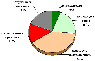 | 3. используют довольно часто | 39,6 | 44,1 | 35,8 | 36,4 | 45 | 41,2 | 34,3 | 49 | 41,7 | 37,7 | 33,9 |