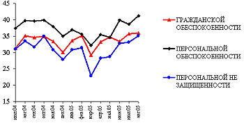 | Индекс ПЕРСОНАЛЬНОЙ НЕ ЗАЩИЩЕННОСТИ | 31,4 | 22,8 | 28,2 | 28,7 | 32,8 | 33,1 | 35,1 |