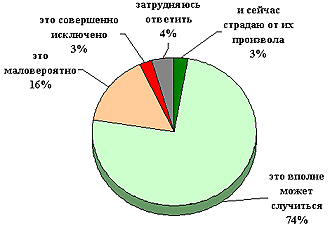 Распределение ответов на вопрос: “МОЖЕТЕ ЛИ ВЫ ИЛИ ВАШИ БЛИЗКИЕ ПОСТРАДАТЬ ОТ ПРОИЗВОЛА ПРАВООХРАНИТЕЛЬНЫХ ОРГАНОВ?” % от числа ответивших