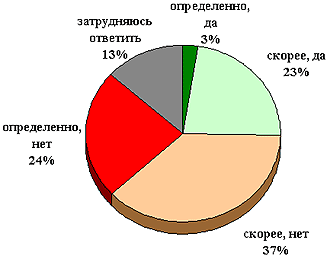 | 3, скорее, нет | 43,1 | 41,8 | 44,6 | 39,7 | 41,7 | 38,7 | 44,3 |
